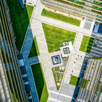 W ramach strategii zrównoważonego rozwoju zastosowano m.in. systemy efektywnego zarządzania energią i wodą, w tym monitoring zużycia mediów w systemie BMS, wykorzystanie wody opadowej m.in. do podlewania terenów zielonych, instalacje fotowoltaiczne na dachach oraz energooszczędne systemy HVAC z odzyskiem ciepła. Wykorzystano również materiały budowlane z deklaracjami środowiskowymi (EPD), a proces budowy prowadzono zgodnie z polityką środowiskową, obejmującą m.in. recykling odpadów, ochronę istniejącej zieleni oraz rozwój bioróżnorodności poprzez nowe nasadzenia i montaż hoteli dla owadów. Teren został objęty planem gospodarki zielenią uwzględniającym zalecenia ekologiczne i ogrodnicze na kolejne lata. Na terenie kompleksu dostępne są także stacje ładowania samochodów elektrycznych, wspierające rozwój elektromobilności.