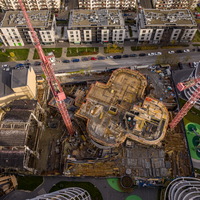 Roboty żelbetowe - 70% (na poziomie czwartego piętra)