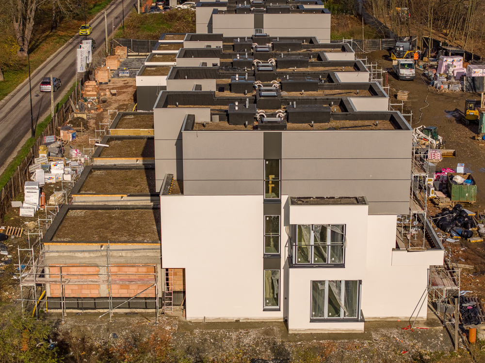 W standardzie każdego domu przewidziano rozprowadzenie instalacji pod klimatyzację oraz wyprowadzenie na dach instalacji pod panele fotowoltaiczne, co daje możliwość przyszłej modernizacji w kierunku ekologicznych i energooszczędnych rozwiązań.