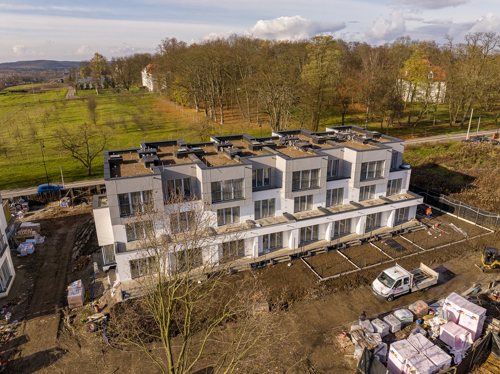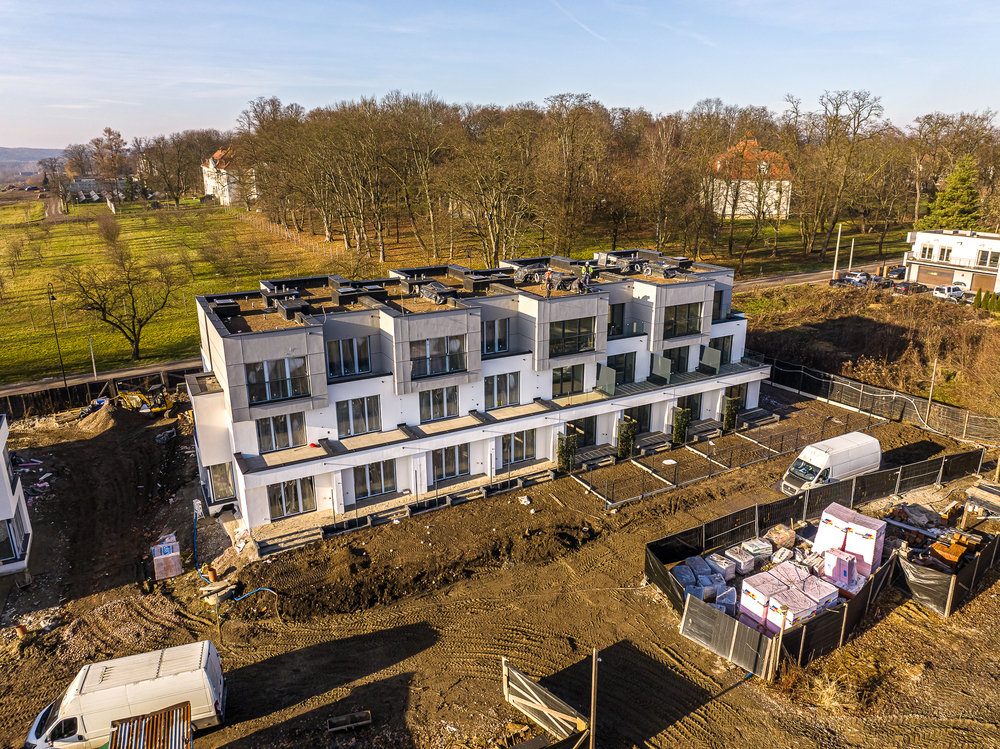 Parkowe Kliny to kameralna inwestycja obejmująca dwa segmenty po 8 domów w zabudowie szeregowej, z ekspozycją wschodnio-zachodnią, zapewniającą doskonałe doświetlenie wnętrz. Każdy dom o powierzchni ok. 145 m² posiada garaż oraz dodatkowe miejsce postojowe na podjeździe. Środkowe domy mają przytulne ogródki o powierzchni ok. 20 m², natomiast domy skrajne oferują przestronne działki od 197 do 230 m², gwarantując dodatkową przestrzeń na odpoczynek i rekreację.
