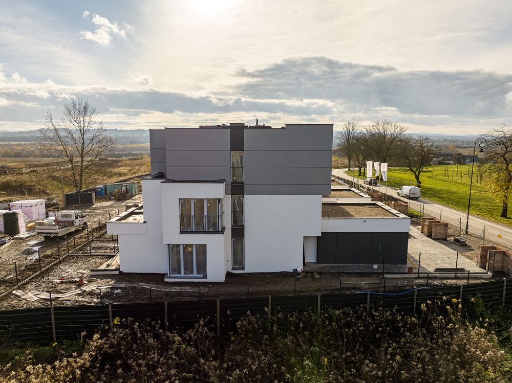Nowoczesna architektura, duże przeszklenia i elegancka bryła budynków tworzą harmonijną całość z otoczeniem. Domy w Parkowych Klinach to połączenie wysokiej jakości materiałów z funkcjonalnymi i przestronnymi wnętrzami, które można dopasować do indywidualnych potrzeb.