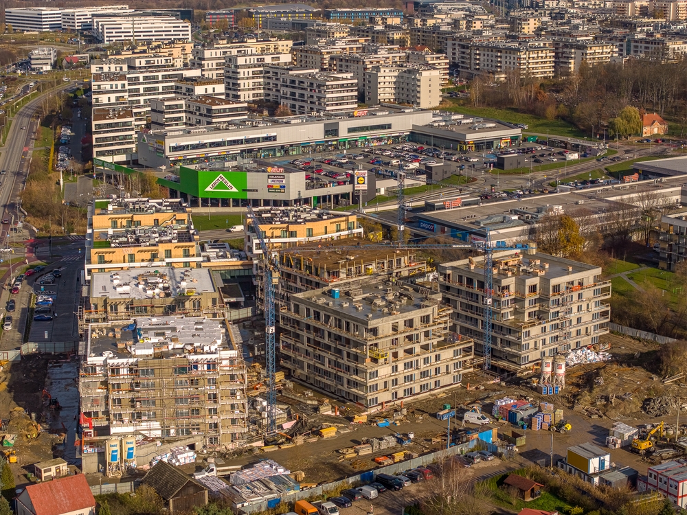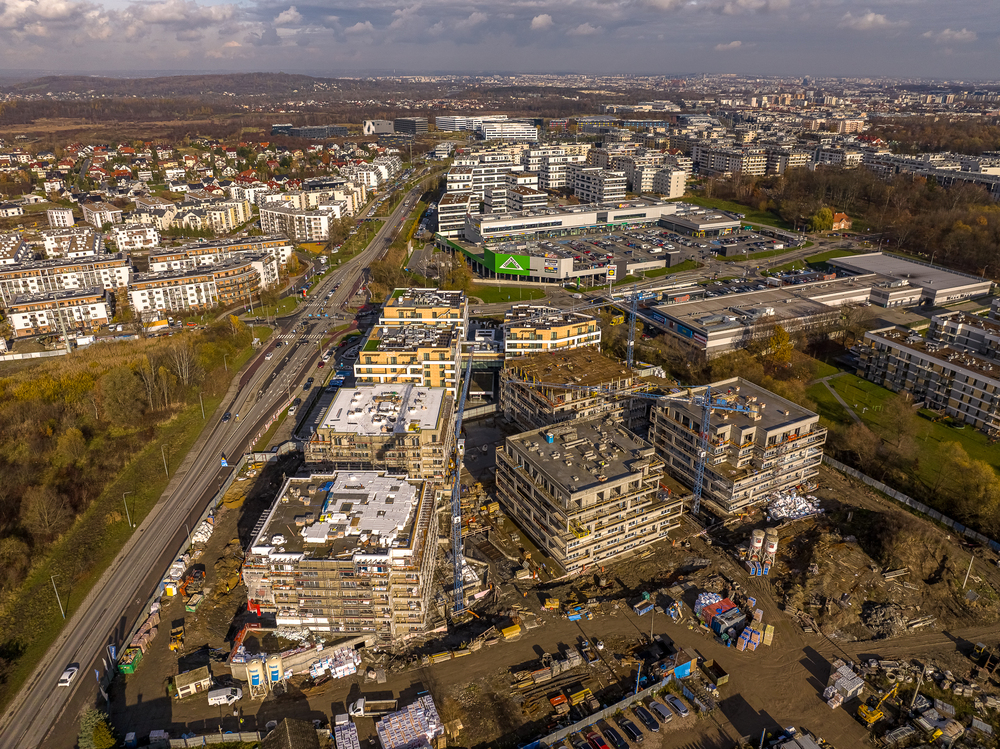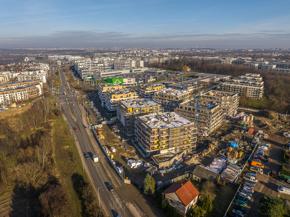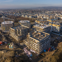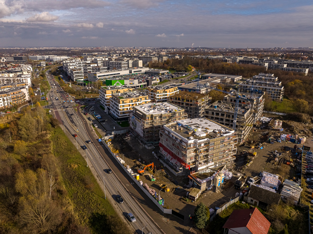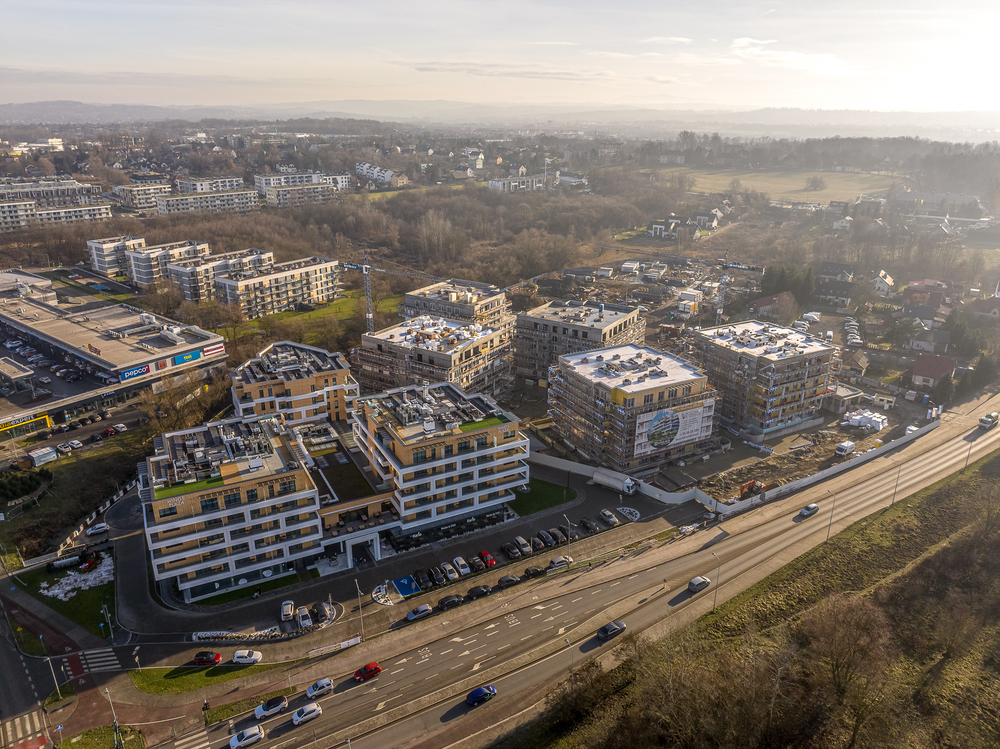 - 5 budynków mieszkalnych z garażami podziemnymi,