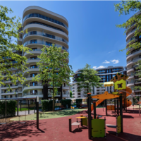 Niekonwencjonalna architektura budynków umożliwiła stworzenie kaskadowego dziedzińca z zielenią oraz nowoczesnym placem zabaw dla dzieci, co tworzy idealne miejsce do relaksu w samym centrum miasta. Na uwagę zasługuje ponadto obecność wysokich przeszklonych lokali użytkowych, umożliwiająca mieszkańcom łatwe i szybkie zakupy.